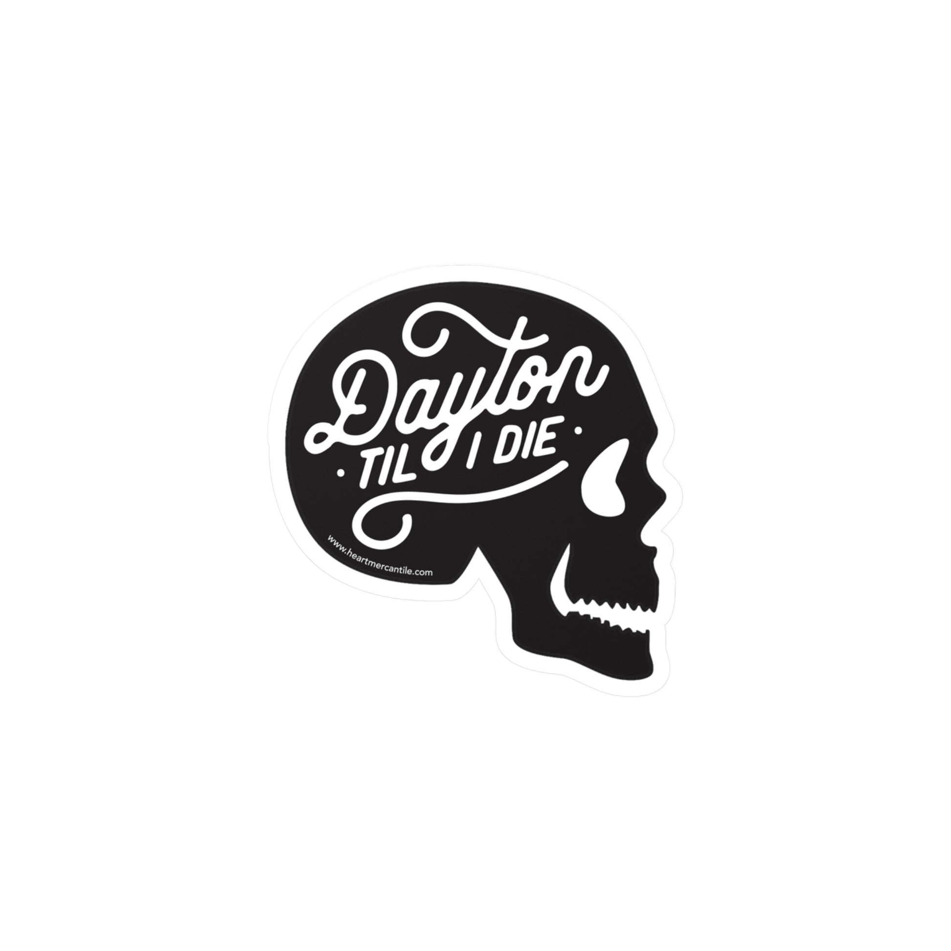 Our popular Dayton 'Til I Die skull design comes printed on stickers.